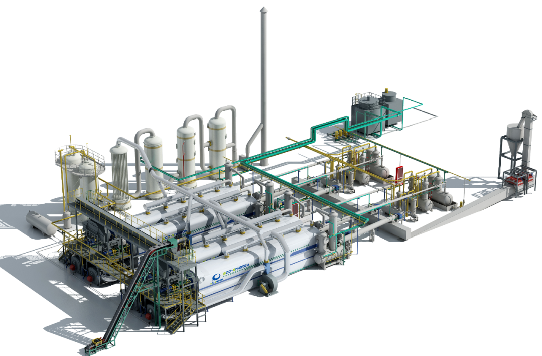 熱解技術充分利用工藝和結構的雙重作用保障,實現(xiàn)進出料系統(tǒng)和熱解系統(tǒng)的動態(tài)密封、防聚合分液器的阻聚降塵、有害氣體的冷卻凈化等,在安全環(huán)保的前提下實現(xiàn)生產(chǎn)線的工業(yè)化穩(wěn)定運行。